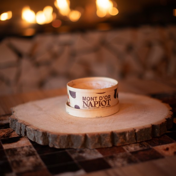 Le Mont D'Or est un fromage saisonnier fabriqué entre le 15 août et le 15 mars. Il se caractérise par sa croûte plissée et souple, et sa pâte crémeuse et fondante. Il se déguste autant en tartine que fondu en boîte chaude. L'écorce d'épicéa issue des forêts de résineux du Massif Jurassien qui entoure le fromage lui donne son goût unique tant apprécié. Pour déguster votre Mont d'Or, la Fromagerie Napiot vous conseille un vin du jura, Chardonnay Berthet-Bondet ou un Chardonnay Rolet.
