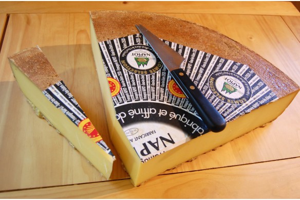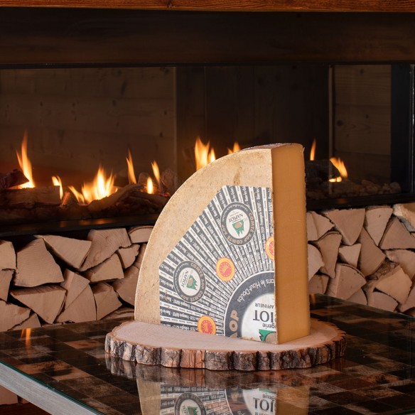 Le Comté Fruité est fabriqué avec le lait des producteurs environnants et affiné lentement durant près d'une année dans nos caves d'affinage. Sa pâte pressée cuite est délicate, souple et d'une belle couleur jaune, il révèle une explosion de saveurs et de finesse en bouche.